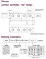 90-Degree Junction Manifolds have the outlet ports on two opposite sides connected to each other through a drill path.