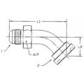 Our Series 1803 Swept 45-Degree Angled Male JIC x Code 62 Flange Head adapters, crafted from durable carbon steel, are designed for high-pressure fluid power systems where space and flow efficiency are crucial. The 45-degree angled male JIC fitting, with its 37-degree flare, ensures a secure, leak-proof connection when paired with female JIC fittings. The Code 62 flange head offers a flat face with bolt holes, making it easy to connect to flange ports for a reliable seal. The swept design of the adapter reduces the risk of flow restriction, making it an ideal solution for systems requiring optimal performance and longevity in demanding hydraulic environments.