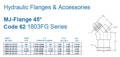 Our Series 1803FG Forged 45-Degree Angled Male JIC x Code 62 Flange Head adapters, made from carbon steel, are designed for high-pressure fluid connections in hydraulic systems. These adapters feature a 45-degree angled male JIC fitting, which creates a secure, leak-free seal with female JIC fittings. The connection is made to Code 62 flanges, which are widely used in demanding hydraulic systems due to their larger size and higher pressure rating compared to Code 61 flanges. Code 62 flanges have a flat face with bolt holes, ensuring a robust, durable seal that can withstand significant pressure. These forged adapters offer enhanced strength and reliability, making them ideal for heavy-duty industrial and fluid power applications.