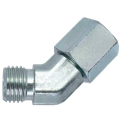 The 45-Degree Angled Male DIN x Female DIN adapters are designed to provide secure, leak-free connections in fluid systems. These adapters feature a male DIN Tube Light Duty connection, compliant with the ISO 8434-1 / DIN 2353 standard, which includes a dual-purpose ball seat for enhanced sealing. The male DIN fitting has a 24° tapered throat inside, easily identified when paired with metric threads. To create a secure connection, a tube nut is tightened over the threads, compressing a ferrule or cutting ring to grip the tube and form a reliable seal. DIN fittings are classified into three pressure classes—LL (extra light duty), L (light duty), and S (heavy duty)—ensuring suitability for various applications. The tube size and series are marked on the tube nut, simplifying compatibility checks. These adapters are ideal for high-pressure systems, offering strong performance and dependable sealing for fluid power applications.