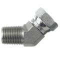 A 45-Degree Angled Male NPT adapter features male NPT (National Pipe Tapered) threads that are offset by 45 degrees from each other, creating a flexible connection option in fluid and gas transfer systems. NPT threads, a U.S. standard used for over 100 years, are tapered to ensure a tight, leak-free seal when the threads are tightened. These adapters are available in various materials, including iron or brass for low-pressure applications and carbon steel or stainless steel for high-pressure systems. The nominal pipe size is determined by measuring the thread diameter and subtracting 1/4". This design is ideal for applications that require angled connections while maintaining secure, effective sealing for fluid and gas transfer. Do not over-tighten. We recommend using a thread sealant with this type of connection style.