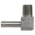 90-Degree Angled Hose Barb adapters are essential components used to create secure, leak-free connections between hoses and pipe fittings in fluid power systems. Designed with a 90-degree angle, these adapters allow for efficient fluid flow in tight spaces by redirecting the hose at a right angle. The hose barb on the adapter grips the inside of the flexible hose, creating a tight seal. The connection is secured further with a hose clamp or similar fastening method. Hose barb adapters work by compressing the hose against the barb, ensuring a strong and reliable seal, and are widely used in industrial, hydraulic, and pneumatic systems for their durability and ease of installation.
