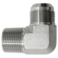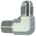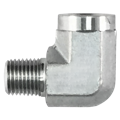 90-Degree Male JIS x Male BSPT adapters are high-quality fittings designed to provide secure, leak-free connections in hydraulic systems. These adapters feature a 90-degree angle, making them ideal for routing hoses and pipes in tight or confined spaces. One end is equipped with a male JIS (Japanese Industrial Standard) connection, commonly used in Japanese hydraulic systems, while the other end features a male BSPT (British Standard Pipe Tapered) thread, which creates a leak-tight seal through thread deformation. A captive seal is made using metal-to-metal angled surfaces or a combination of metal-to-metal with an O-ring. BSPT male adapters are compatible with both BSPP (British Standard Pipe Parallel) and BSPT female ports. Thread sealant is recommended to secure this connection style, as BSPT threads feature a tapered design, denoted by "R" (e.g., BSPT 1/4-19 can be designated as R 1/4). These adapters offer excellent durability and strength in high-pressure fluid systems and are perfect for industrial applications requiring reliable, leak-free connections. BSPT (British Standard Pipe Tapered) male adapters are compatible with both BSPP and BSPT female ports.