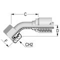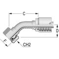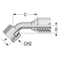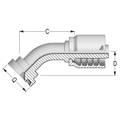 The Alfagomma 45-Degree One-Piece AlfaCrimp B Series Fitting is a high-quality fitting designed to connect braided hoses up to 1" ID in fluid power systems at a 45-degree angle. This fitting uses a non-skive crimp design, meaning there’s no need to remove or prepare any part of the hose before installation, which saves time and simplifies the process. A crimp fitting works by tightly compressing the hose onto the fitting, ensuring a secure, leak-proof connection. Braided hoses are flexible hydraulic hoses reinforced with layers of steel wire, providing extra strength and resistance to pressure. This fitting is ideal for applications where space is limited or a precise angle is required, ensuring a strong, reliable connection for high-pressure systems.