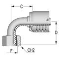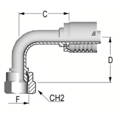 The Alfagomma One-Piece AlfaCrimp D Series 90-Degree Angled Fitting is a high-quality, durable fitting designed to connect wire-braided hoses and 4-wire spiral hoses to fluid systems at a 90-degree angle. This fitting uses a non-skive crimp design, which means there's no need to remove or prepare any part of the hose before installation, making the process faster and more efficient. A crimp fitting works by tightly compressing the hose onto the fitting, ensuring a strong, leak-proof connection. It is ideal for hoses above 1" ID, such as Alfabiotech 3000 hoses (1 ¼" ID to 2" ID) and Alfabiotech 4000 hoses (³⁄₈" ID to 1 ¼" ID). Braided hoses are flexible hydraulic hoses reinforced with multiple layers of steel wire, providing high strength and resistance to pressure. This fitting ensures reliable, long-lasting connections, making it perfect for high-pressure fluid systems that require secure, durable seals at precise angles.