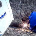 Hydraulic oil flow is led to the hydraulic welding generator’s integrated hydraulic motor through the pressure line.
