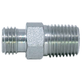 Straight Male DIN x Male NPT hydraulic adapters are designed to connect two hydraulic systems that use different thread types. The DIN side of the adapter features a 24° tapered throat inside the male threads, allowing for a secure connection when a tube nut is tightened over the metric threads, compressing a ferrule or cutting ring to grip the tube. The NPT side, which is a U.S. standard for tapered threads, creates a metal-to-metal seal by deforming the threads, ideal for fluid and gas transfer in single-assembly applications. DIN fittings come in three pressure classes—extra light duty, light duty, and heavy duty—making them versatile for various systems. This combination of DIN and NPT ensures compatibility between European and American hydraulic systems while providing a reliable, leak-proof seal.