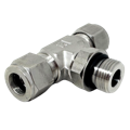 The Series SPMBT Positionable Branch Tee Stainless Female Tube OD x Tube OD x Male ORB Tees, made from durable 316 stainless steel, are specialized fittings designed to allow flexible and secure connections in hydraulic and fluid systems. Featuring two female tube ends and one male ORB (O-Ring Boss) connection, these tees are ideal for applications requiring precise fluid direction control. ORB fittings use a straight thread and an O-ring to create a leak-free, adjustable seal, ensuring high performance in high-pressure environments. The positionable design of this tee allows for easy alignment and ensures optimal fluid flow through different tubing sizes. These fittings are commonly used in industries like aerospace, chemical processing, and instrumentation, where durable, reliable connections are essential.
