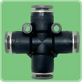 The Norgren Pneufit C Female PIF Union Cross is a convenient fitting for connecting multiple pneumatic lines quickly and securely. It features four female push-in ports arranged in a cross shape, allowing for easy branching of air or fluid lines in your system. Made from Polybutylene Terephthalate (PBT), this fitting is durable, corrosion-resistant, and ideal for use in food and beverage applications due to its resistance to chlorine and harsh cleaning chemicals.