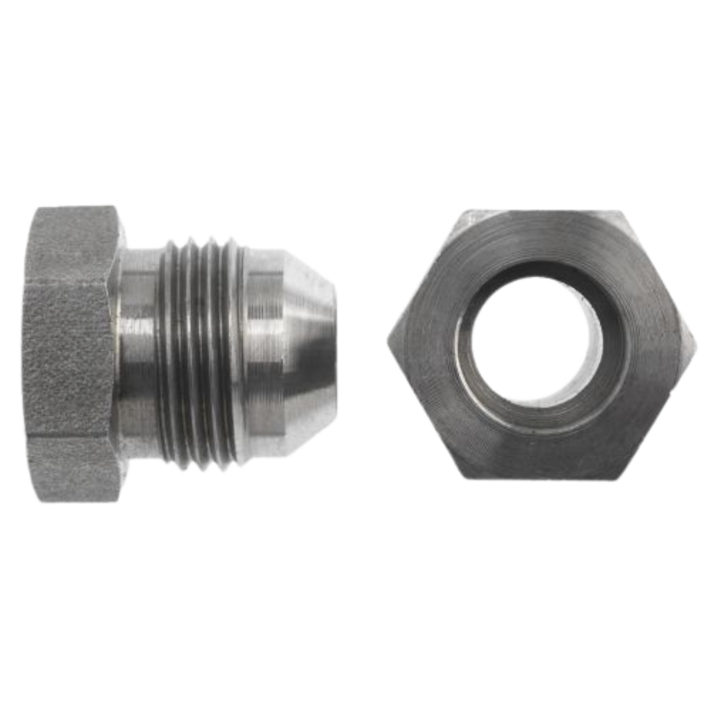 Our Series 0403-SS Bored Straight Male JIC Plug Adapters, crafted from stainless steel, feature a through-bore drilled through the hex, allowing for fluid or gas passage while maintaining a secure male JIC connection. These adapters are designed with a 37-degree flared seat, ensuring a strong, leak-free mechanical connection, ideal for high-pressure hydraulic applications. The stainless steel construction provides superior durability, corrosion resistance, and strength, making these plug adapters suitable for a wide range of industries. Perfect for sealing off male JIC connections, they deliver a reliable, long-lasting solution in demanding environments.