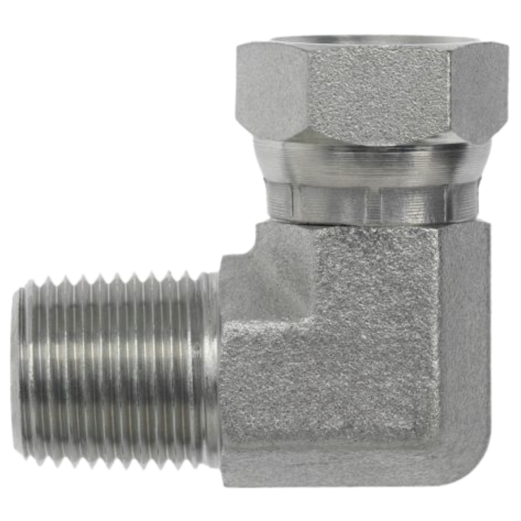 The Series 1501-SS 90-Degree Angled Male NPTF x Female NPSM swivel adapters are premium stainless steel fittings designed to provide secure, leak-free connections in hydraulic systems. Featuring a 90-degree angle, these adapters are ideal for routing hoses and pipes efficiently in tight or confined spaces. One end is equipped with a male NPTF (National Pipe Tapered Fuel) thread, which ensures a tight, leak-free seal through the deformation of the tapered threads, while the other end features a female NPSM (National Pipe Straight Mechanical) thread, designed to provide a secure connection with the help of a gasket or sealant. The key difference between NPTF and NPSM is that NPTF threads are designed for leak-tight connections without the need for sealants, while NPSM threads require a gasket or sealant to achieve a leak-free seal. The swivel feature allows for easier installation and adjustment, making these adapters ideal for high-pressure fluid transfer systems. Made from corrosion-resistant stainless steel, the Series 1501-SS offers excellent durability and long-lasting performance in demanding industrial applications.