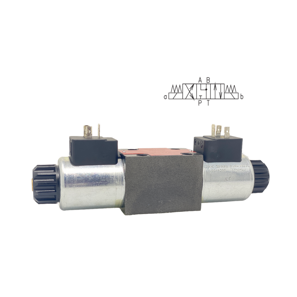 Direct acting, directional control valve with subplate mounting interface acc. to ISO 4401, DIN 24340 (CETOP 03). High transmitted hydraulic power up to 350 bar with optimized design to minimize pressure drop. Five chamber housing design with reduced hydraulic power dependence on fluid viscosity. The valve is available with interchangeable DC solenoids, also for AC power supply using a built-in rectifier bridge. Wide range of solenoid electrical terminal versions, interchangeable spools and manual overrides available. The coil is fastened to the core tube with a retaining nut and can be rotated by 360-degrees to suit the available space. In the standard version, the valve housing is phosphated.