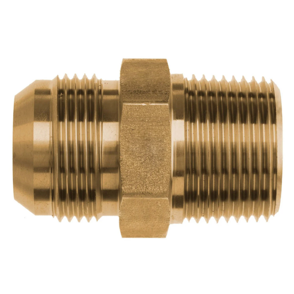 The Series 2404-B Straight Male JIC x Male NPT hydraulic adapters, crafted from high-quality brass, are essential fittings designed to provide secure and efficient connections in hydraulic systems. These adapters feature a male JIC (Joint Industry Council) end, utilizing a 37-degree flare seating surface and parallel threads as defined by SAE J514, which are commonly found in fluid power applications. The seal is achieved by establishing contact between the male flared seat and the female coned seat, resulting in a robust mechanical connection. On the other end, the male NPT (National Pipe Taper) connection employs tapered threads to effectively seal pipes for fluid and gas transfer through thread deformation, ensuring a strong metal-to-metal seal. The nominal pipe size can be easily identified by measuring the thread diameter and subtracting 1/4". While NPT connections are ideal for single assembly applications, they are not recommended for frequent disassembly due to potential wear on the threads. These brass adapters are perfect for professionals seeking reliable and durable hydraulic solutions across various applications, ensuring optimal performance and safety in fluid transfer systems.