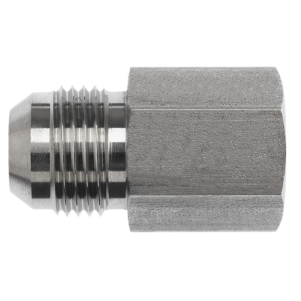 Our Series 2405 Straight Male JIC x Female NPT Rigid one-piece hydraulic adapters are essential components in hydraulic systems, providing a reliable connection between hoses and pipes. Made from durable carbon steel, these adapters feature a male JIC end that connects to a female NPT fitting. JIC (Joint Industry Council) fittings, defined by SAE J514, are compression fittings with a 37-degree flare seating surface and parallel threads, commonly used in fluid power systems. The connection is made by ensuring contact between the male flared and female coned seat, creating a robust mechanical seal. NPT (National Pipe Taper) connections, on the other hand, use tapered threads to seal pipes for fluid and gas transfer, making them ideal for single assembly applications. To identify the nominal pipe size, you can measure the thread diameter and subtract 1/4". While NPT connections provide a metal-to-metal seal, they are not recommended for frequent assembly and disassembly due to potential thread wear. The Series 2405 adapters enhance system performance and are a crucial choice for professionals seeking dependable hydraulic solutions.