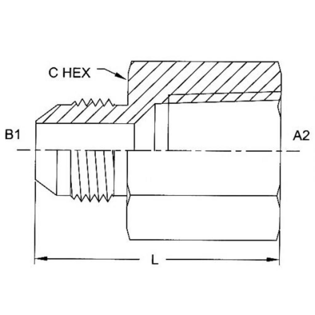 Our Series 2405-SS Straight Male JIC x Female NPT Rigid 1-Piece Stainless Steel hydraulic adapters are vital components designed for effective fluid transfer in hydraulic systems. Constructed from high-quality stainless steel, these adapters feature a male JIC end that connects securely to a female NPT fitting. JIC (Joint Industry Council) fittings, defined by SAE J514, are compression fittings with a 37-degree flare seating surface and parallel threads, commonly found in fluid power systems for their reliability and durability. The seal is achieved by establishing contact between the male flared seat and the female coned seat, creating a strong mechanical connection. On the other hand, NPT (National Pipe Taper) connections utilize tapered threads to effectively seal pipes for fluid and gas transfer. The nominal pipe size can be identified by measuring the thread diameter and subtracting 1/4". While NPT connections provide a metal-to-metal sealing design ideal for single assembly applications, they are not recommended for frequent disassembly due to potential thread wear. The Series 2405-SS stainless steel adapters enhance system performance and are an excellent choice for professionals seeking reliable hydraulic solutions.