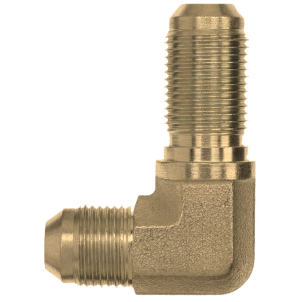 The Series 2701-B 90-Degree Angled Male JIC x Male JIC Rigid Bulkhead adapters are high-quality brass fittings designed for secure, leak-free connections in hydraulic systems. These adapters feature a 90-degree angle, making them perfect for applications where space is tight and a strong, reliable connection is needed. Both ends are equipped with male JIC (Joint Industry Council) 37° flare connections, ensuring a durable mechanical seal. Bulkhead adapters like the Series 2701-B are specially designed to pass through a panel or wall, allowing hoses and pipes to be securely mounted externally, creating a clean and efficient fluid transfer path. Made from brass, these adapters provide excellent performance and corrosion resistance, making them ideal for moderate-pressure fluid power systems in industrial applications.