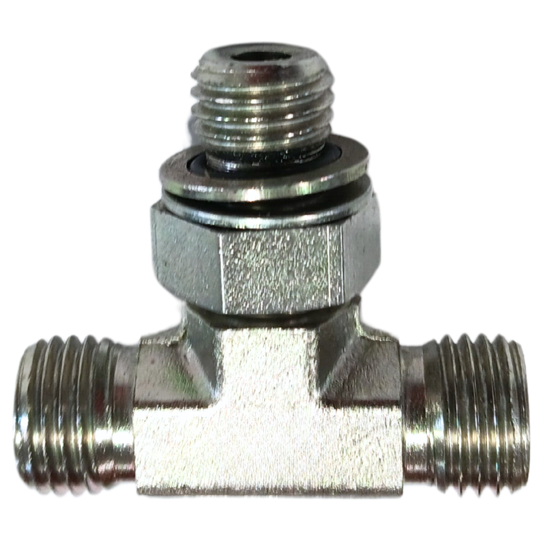 The Series 5169S Branch Tee Male Heavy Duty DIN x Male Heavy Duty DIN x Male Adjustable Metric adapters are durable carbon steel fittings designed to provide secure, leak-free fluid connections in high-pressure hydraulic and fluid power systems. These branch tee adapters feature a three-way design, with two male Heavy Duty DIN (Deutsches Institut für Normung) connections and one male adjustable metric connection. The male Heavy Duty DIN connections ensure robust, reliable fluid routing, while the male adjustable metric connection provides flexibility for precise sealing adjustments, offering a dependable, leak-proof fit. Made from carbon steel, these adapters are built to withstand harsh conditions, offering superior strength, corrosion resistance, and long-lasting performance. The Series 5169S adapters are perfect for industrial applications that demand flexible, efficient, and dependable fluid routing, ensuring secure and reliable fluid transfer in demanding environments.