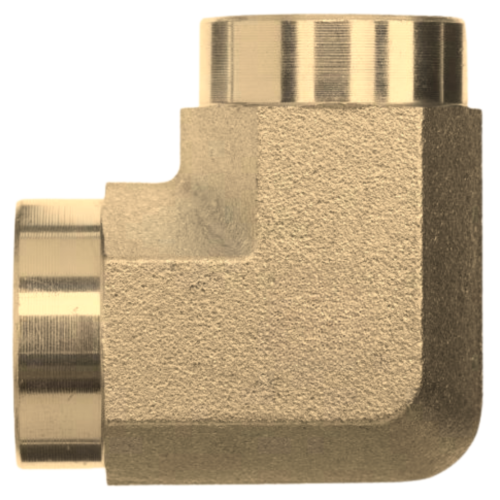 The Series 5504-B 90-Degree Female NPTF x Female NPTF rigid street elbow adapters are high-quality brass fittings designed to provide secure, leak-free connections in hydraulic and fluid systems. These adapters feature a 90-degree angle, allowing for efficient routing of hoses and pipes in tight or confined spaces. Both ends are equipped with female NPTF (National Pipe Tapered Fuel) threads, which are specifically designed to create a reliable, leak-proof seal by deforming the tapered threads upon tightening. NPTF threads are commonly used in fuel and fluid systems, offering a robust metal-to-metal seal. The rigid street elbow design connects two pipes at a 90-degree angle, ensuring uninterrupted fluid flow while maintaining system integrity. Made from durable brass, the Series 5504-B offers excellent corrosion resistance and long-lasting performance, making it ideal for moderate-pressure fluid power systems and industrial applications that require dependable, flexible, and corrosion-resistant connections.