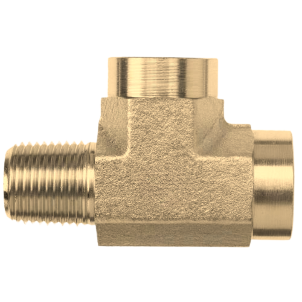 The Series 5602-B Street Tee Male NPT x Female NPT x Female NPT adapters are durable brass fittings designed to provide secure, leak-free connections in hydraulic and fluid power systems. These street tee adapters feature a three-way design, with one male NPT (National Pipe Tapered) connection and two female NPT connections, allowing for efficient fluid distribution or splitting within a system. The male NPT connection forms a tight, leak-proof seal through thread deformation, while the female NPT connections ensure a secure, reliable fit. Made from brass, these adapters offer excellent corrosion resistance and are ideal for moderate-pressure systems where durability and flexibility are important. The Series 5602-B adapters are perfect for applications that require dependable, efficient fluid routing in a range of industrial settings, offering long-lasting performance and secure connections in a variety of environments.