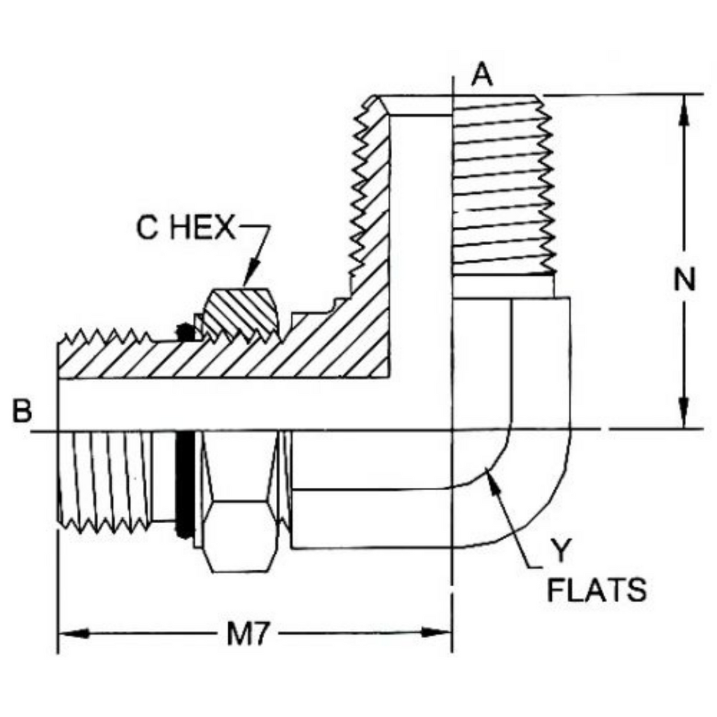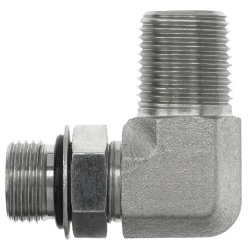 The Series 6806-NWO 90-Degree Angled Male Adjustable ORB x Male NPTF adapters are high-quality carbon steel fittings designed for secure, leak-free connections in hydraulic systems. These adapters feature a 90-degree angle, making them ideal for routing hoses and pipes in tight or confined spaces. One end is equipped with a male Adjustable ORB (O-Ring Boss) connection, which provides an adjustable seal by trapping an O-ring in the port cavity, while the other end features a male NPTF (National Pipe Tapered Fuel) thread, ensuring a tight, leak-free connection through thread deformation. Made from durable carbon steel, these adapters are perfect for high-pressure fluid power systems, offering exceptional strength, corrosion resistance, and long-lasting performance. The Series 6806-NWO is ideal for applications requiring adjustable and secure connections in industrial environments.