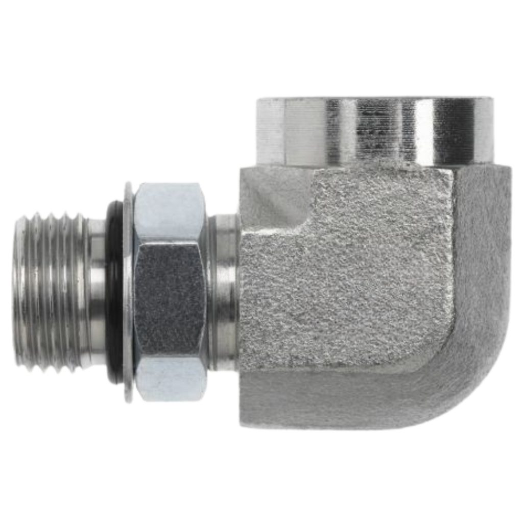 The Series 6815-NWO 90-Degree Angled Male Adjustable ORB x Female ORB adapters are high-performance carbon steel fittings designed for secure, leak-free connections in hydraulic systems. Featuring a 90-degree angle, these adapters are ideal for routing hoses and pipes efficiently in tight or confined spaces. One end is equipped with a male Adjustable ORB (O-Ring Boss) connection, which ensures a reliable, adjustable seal by compressing an O-ring into the port's chamfer for a leak-tight fit. The other end has a female ORB (O-Ring Boss) connection, which also provides a secure, leak-tight seal by using an O-ring. These adapters are designed for high-pressure fluid power systems, offering excellent strength, corrosion resistance, and long-lasting performance. Made from durable carbon steel, the Series 6815-NWO is perfect for industrial applications requiring secure, adjustable, and reliable connections in fluid transfer systems.
