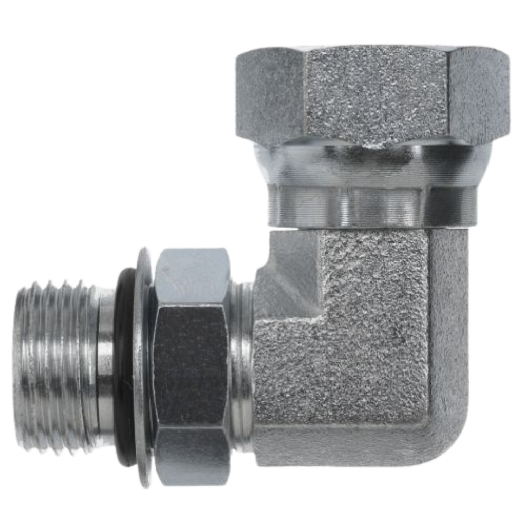 The Series 6901-NWO 90-Degree Angled Male Adjustable ORB x Female NPSM Swivel adapters are high-performance carbon steel fittings designed to provide secure, leak-free connections in hydraulic systems. These adapters feature a 90-degree angle, making them ideal for routing hoses and pipes in tight or confined spaces. One end is equipped with a male Adjustable ORB (O-Ring Boss) connection, ensuring a reliable, adjustable seal by compressing an O-ring into the port’s chamfer for a leak-tight fit. The other end has a female NPSM (National Pipe Straight Mechanical) thread, designed for a mechanical connection with the use of a gasket or sealant. The swivel feature allows for easy installation and flexibility, making these adapters perfect for systems that require precise alignment. Made from durable carbon steel, the Series 6901-NWO offers exceptional strength, corrosion resistance, and long-lasting performance, making it ideal for high-pressure fluid power systems and industrial applications.