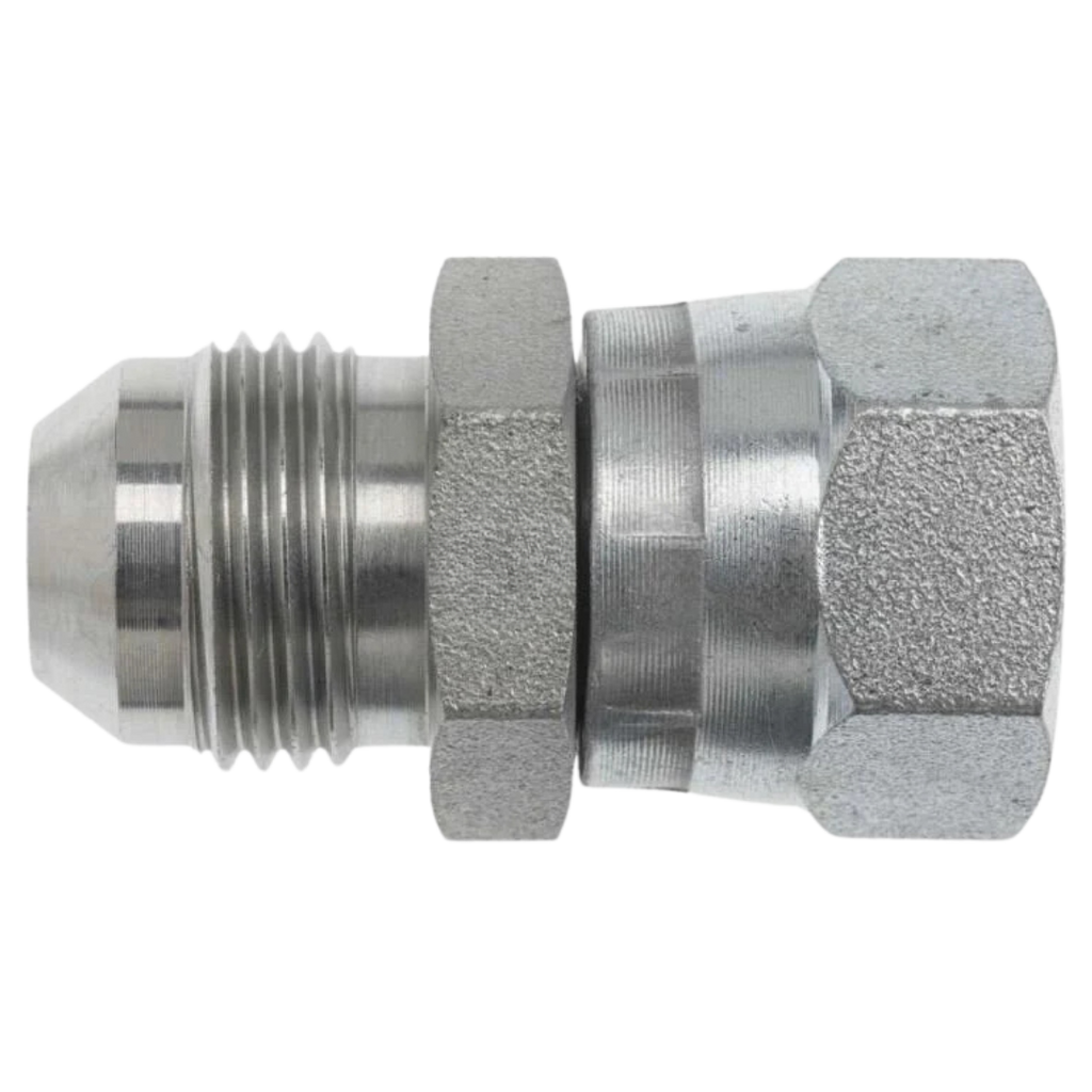 Our Series 7004 Straight Male JIC x Female BSPP Swivel adapters, made from high-quality carbon steel, are essential components in hydraulic systems that ensure secure and reliable connections. These adapters feature a male JIC (Joint Industry Council) connection on one end, known for its 37-degree flare seating surface and parallel threads, providing a durable and leak-free seal. On the other end, the female BSPP (British Standard Pipe Parallel) connection offers a tapered nose flareless swivel, where the seal is created between the cone seat of the male connector and the female threads. These adapters are ideal for high-pressure fluid power systems and are perfect for professionals looking for versatile and reliable solutions in hydraulic applications. The Series 7004 ensures optimal performance, minimizing the risk of leaks while providing a robust mechanical connection.