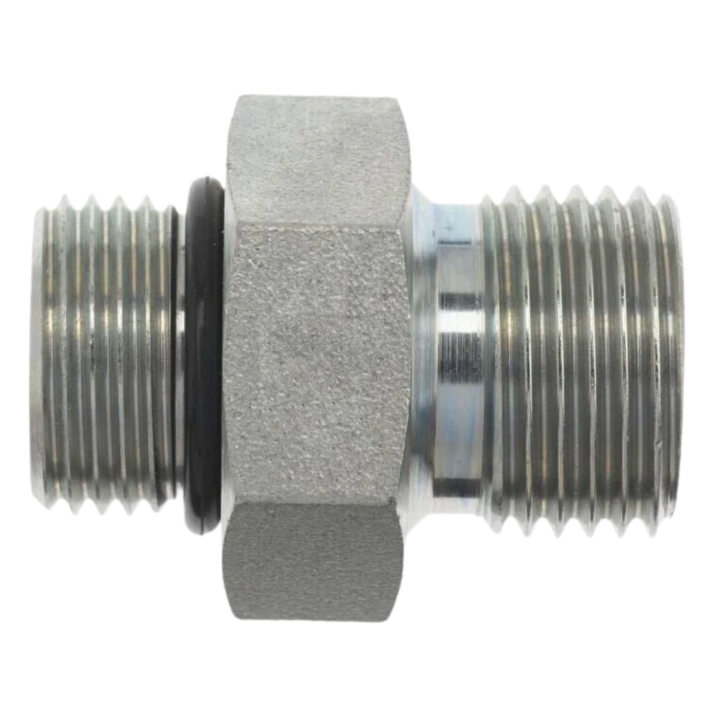 The Series 7062 Straight Male ORB x Male BSPP hydraulic adapters, made from carbon steel, offer a reliable connection for medium to high-pressure hydraulic systems. ORB (SAE Straight Thread O-ring Boss) fittings are designed with a male straight UNF thread and an O-ring that creates a leak-tight seal when compressed into a chamfer on the female connection. This seal ensures optimal performance and leak prevention as recommended by the NFPA. The BSPP (British Standard Parallel Pipe) male connection is similar to the American NPSM but features a different thread pitch, and the seal is made using a combination of metal-to-metal surfaces or an O-ring. These adapters are ideal for fluid power systems where both the ORB and BSPP connections are required, offering strength, durability, and high performance in carbon steel for a wide range of hydraulic applications.