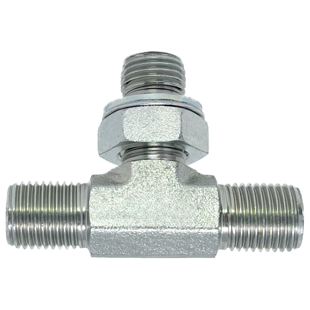 The Series 9152 Branch Tee Male BSPP x Male BSPP x Male Adjustable BSPP adapters are durable carbon steel fittings designed for efficient, leak-free fluid routing in hydraulic and fluid power systems. These branch tee adapters feature a three-way design, with two male BSPP (British Standard Parallel Pipe) connections and one male adjustable BSPP connection. The male BSPP connections ensure secure, reliable fluid routing, while the male adjustable BSPP connection offers precise adjustments, allowing for a reliable, leak-proof seal. Known for their excellent leak prevention, BSPP connections are ideal for high-pressure applications. Made from carbon steel, the Series 9152 adapters offer exceptional strength, corrosion resistance, and long-lasting performance, making them perfect for industrial systems that require dependable, flexible, and efficient fluid routing. These adapters provide a secure, reliable solution for fluid transfer in demanding environments.