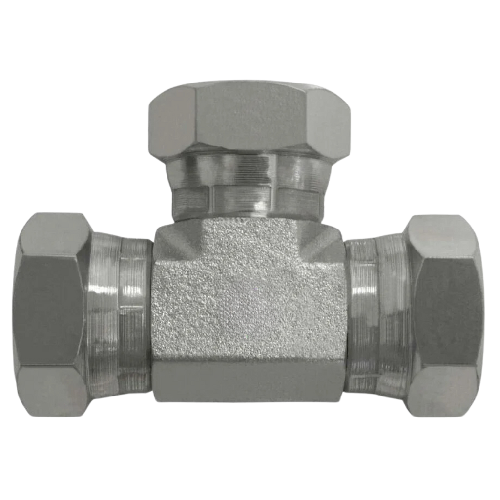 Our Series 9322 Rigid Tee Male BSPP x Male BSPP x Male BSPP Adapters, made from durable carbon steel, are designed to provide secure and efficient connections in fluid systems. Featuring a three-way tee design, these adapters allow fluid to flow in multiple directions, making them ideal for distributing fluid within a system. With male BSPP (British Standard Pipe Parallel) connections on all ends, they create a leak-tight seal through the use of metal-to-metal angled surfaces or a combination of metal and O-ring, ensuring reliable and efficient performance. These rigid tee adapters are essential for high-pressure hydraulic systems and are perfect for professionals seeking dependable solutions for complex fluid power applications.
