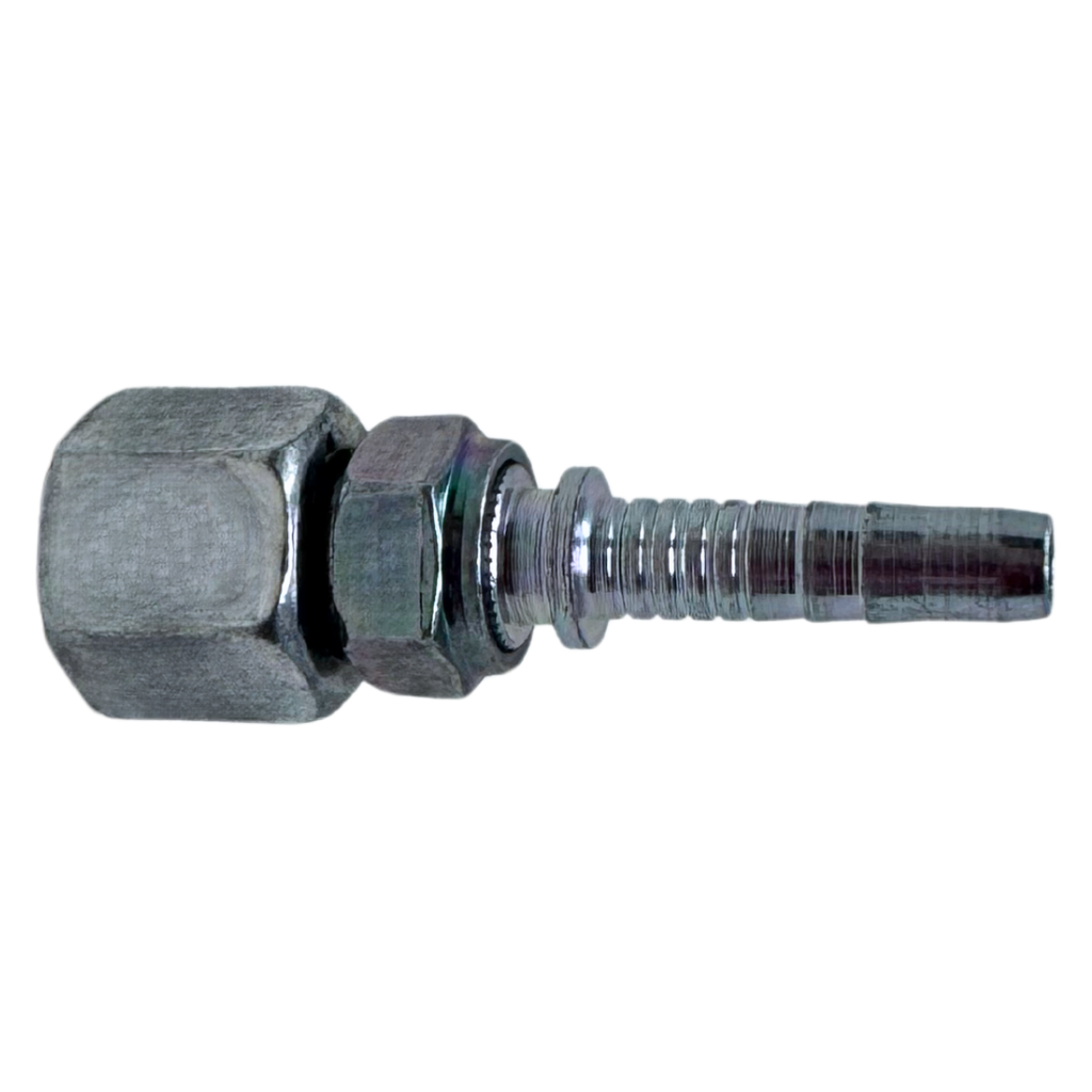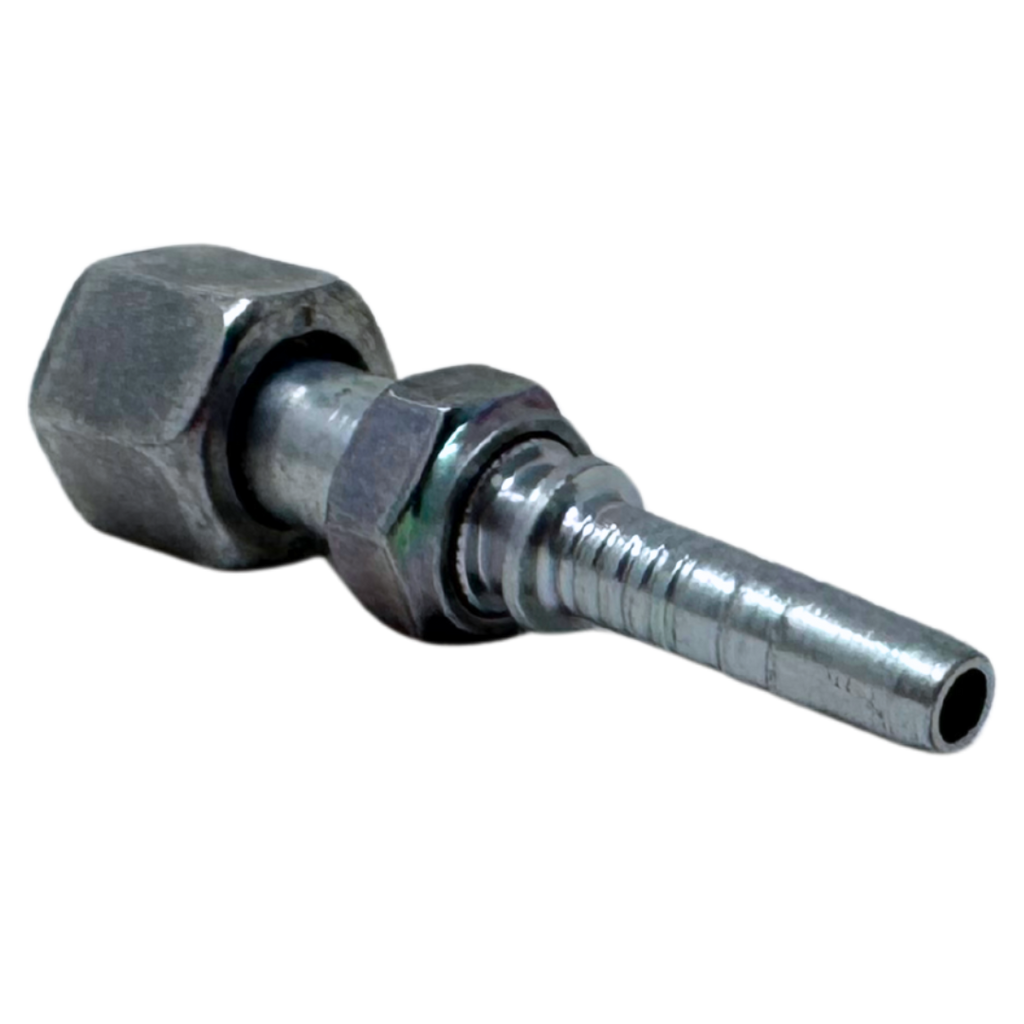 The Alfagomma A-FOFS Two-Piece Fittings are straight, carbon steel fittings designed to connect wire and textile braided hoses, thermoplastic hoses, Flexor 4, PTFE hoses, and Alfabiotech hoses ranging from ³⁄₁₆" to 2" in diameter. These fittings feature a two-piece insert, which includes a ferrule—a metal or plastic component that compresses the hose onto the fitting to ensure a secure, leak-proof seal. The key difference between two-piece and one-piece fittings is that two-piece fittings consist of separate components—the ferrule and the fitting body—providing flexibility for installation and easier replacement. One-piece fittings, in contrast, are pre-assembled, which makes installation faster but offers less flexibility. The A-FOFS fitting has an ORFS (O-Ring Face Seal) female connection with a double hex design, making it ideal for high-pressure fluid systems. This fitting is perfect for use with Alfabiotech 3000 (1 ¼" and 1 ½") and Alfabiotech 4000 (³⁄₈" to 1 ¼") hoses, as well as smaller ID spiral wire reinforced hoses, offering reliable, long-lasting hose connections for demanding industrial applications.