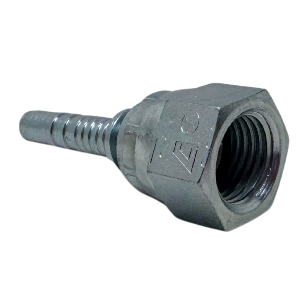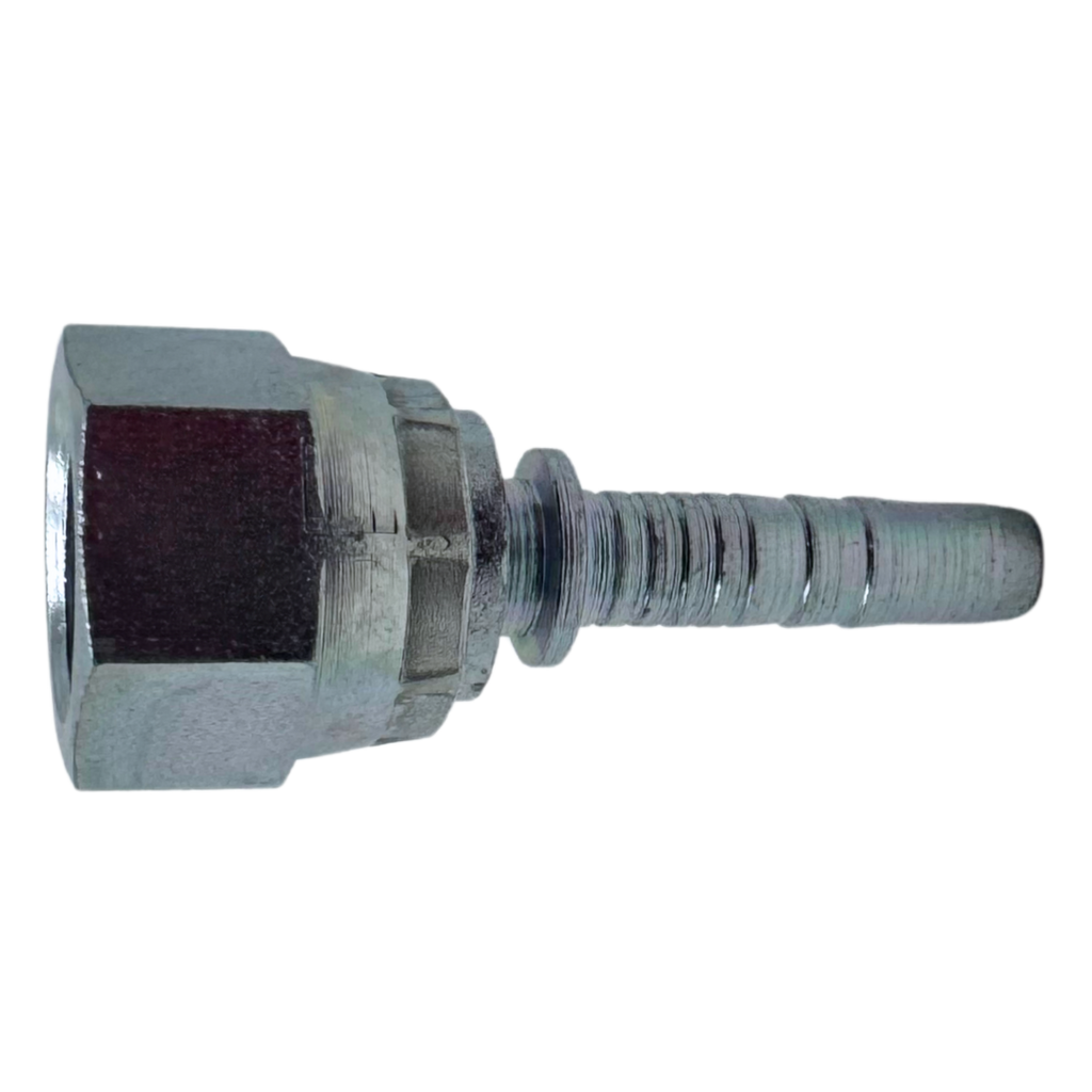 The Alfagomma A-FJSH Two-Piece Fittings are straight, carbon steel fittings designed to securely connect wire and textile braided hoses, thermoplastic hoses, Flexor 4, PTFE hoses, and Alfabiotech hoses ranging from ³⁄₁₆" to 2" in diameter. These fittings use a two-piece insert, which includes a ferrule—a metal or plastic component that compresses the hose onto the fitting to create a tight, leak-proof seal. The difference between two-piece and one-piece fittings is that two-piece fittings are made up of separate parts (the ferrule and fitting body), offering more flexibility for installation and easier replacement, while one-piece fittings are pre-assembled for quicker setup. The A-FJSH fitting features a JIC female 37° seat, providing a strong, reliable connection for high-pressure fluid systems. This fitting is ideal for use with Alfabiotech 3000 (1 ¼" and 1 ½") and Alfabiotech 4000 (³⁄₈" to 1 ¼") hoses, as well as smaller ID spiral wire reinforced hoses, ensuring secure, long-lasting hose connections in demanding industrial applications.