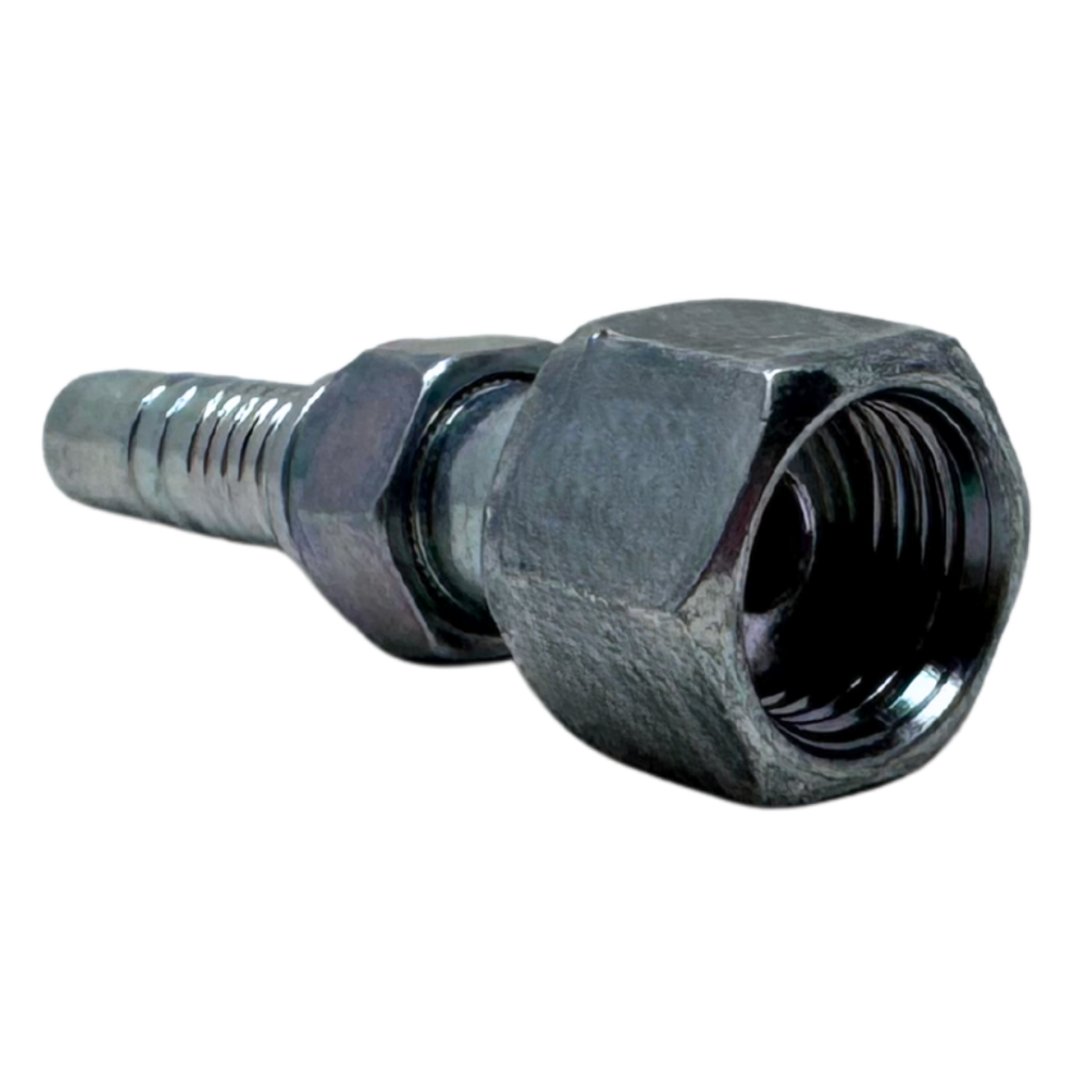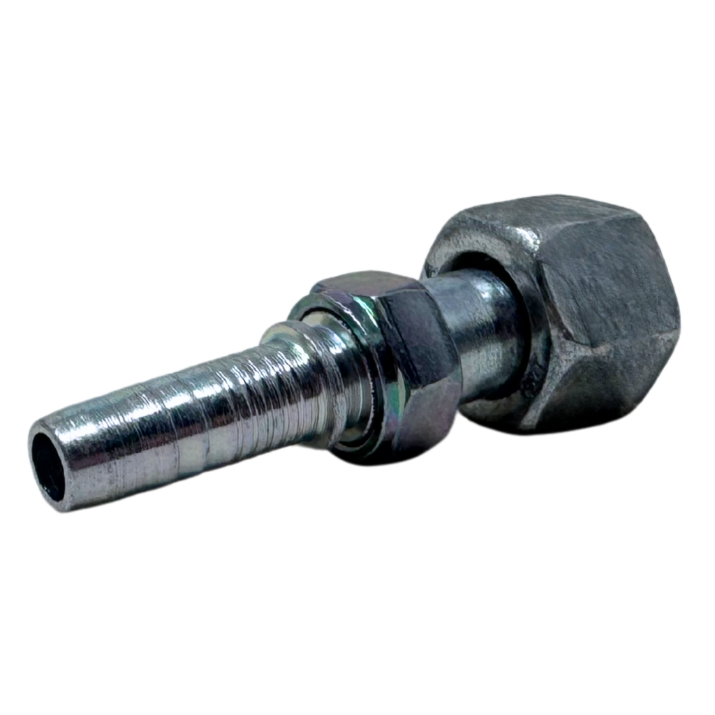 The Alfagomma A-FOFS Two-Piece Fittings are straight, carbon steel fittings designed to connect wire and textile braided hoses, thermoplastic hoses, Flexor 4, PTFE hoses, and Alfabiotech hoses ranging from ³⁄₁₆" to 2" in diameter. These fittings feature a two-piece insert, which includes a ferrule—a metal or plastic component that compresses the hose onto the fitting to ensure a secure, leak-proof seal. The key difference between two-piece and one-piece fittings is that two-piece fittings consist of separate components—the ferrule and the fitting body—providing flexibility for installation and easier replacement. One-piece fittings, in contrast, are pre-assembled, which makes installation faster but offers less flexibility. The A-FOFS fitting has an ORFS (O-Ring Face Seal) female connection with a double hex design, making it ideal for high-pressure fluid systems. This fitting is perfect for use with Alfabiotech 3000 (1 ¼" and 1 ½") and Alfabiotech 4000 (³⁄₈" to 1 ¼") hoses, as well as smaller ID spiral wire reinforced hoses, offering reliable, long-lasting hose connections for demanding industrial applications.