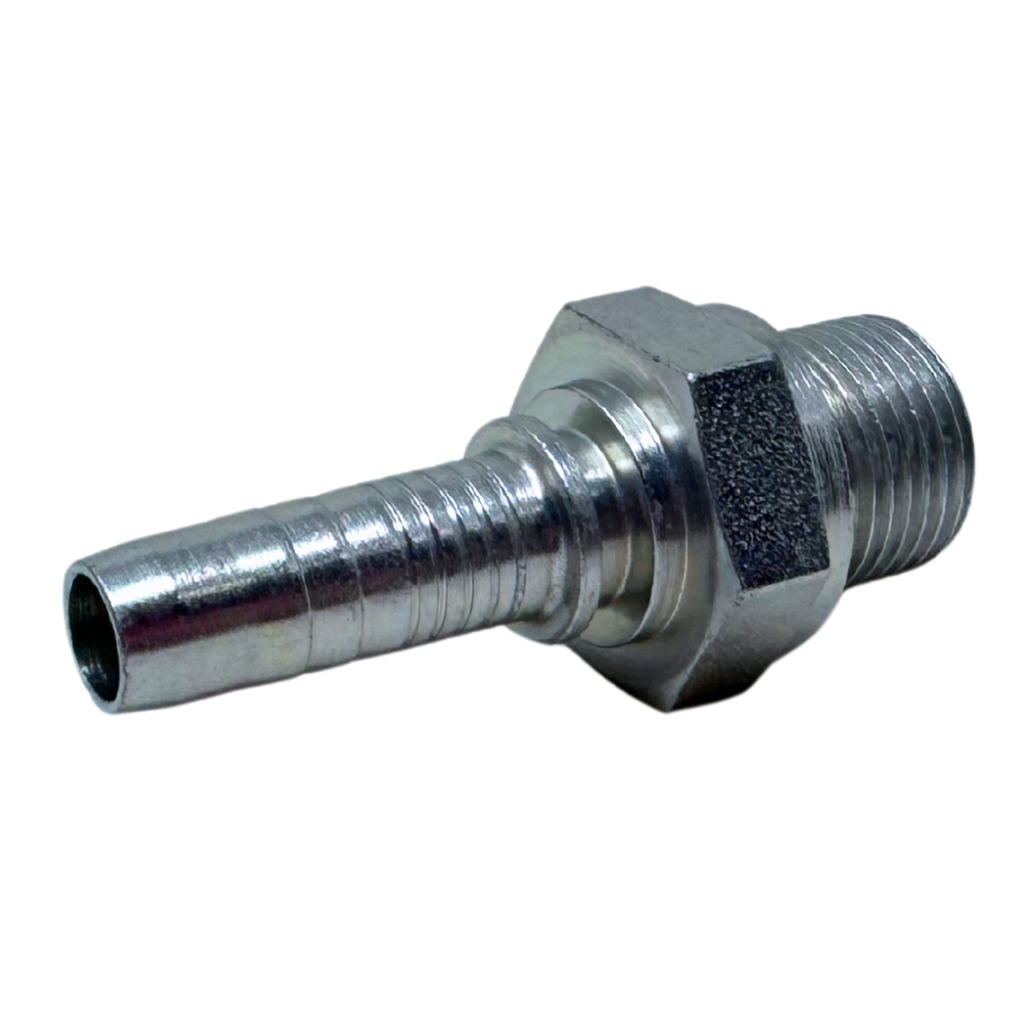 The Alfagomma A-MBPP Two-Piece Fittings are high-quality, straight, carbon steel fittings designed to connect hoses to BSP (British Standard Pipe) male parallel threaded connections with a 60° seat. These fittings are commonly used for wire and textile braided hoses, thermoplastic hoses, and Flexor 4 and PTFE hoses, with sizes ranging from ³⁄₁₆" to 2" ID. The two-piece fitting design includes a hose end and a ferrule, a metal sleeve that helps securely clamp the hose to the fitting, ensuring a leak-proof connection. The difference between two-piece and one-piece fittings is that two-piece fittings consist of separate parts that are assembled together, allowing for easier installation and replacement, while one-piece fittings are a single unit, providing a more compact but less flexible option. Ferrules are essential components in a two-piece fitting setup, helping to ensure that the hose is tightly and securely attached to the fitting. These fittings are ideal for applications requiring strength, durability, and reliability, particularly in high-pressure systems.