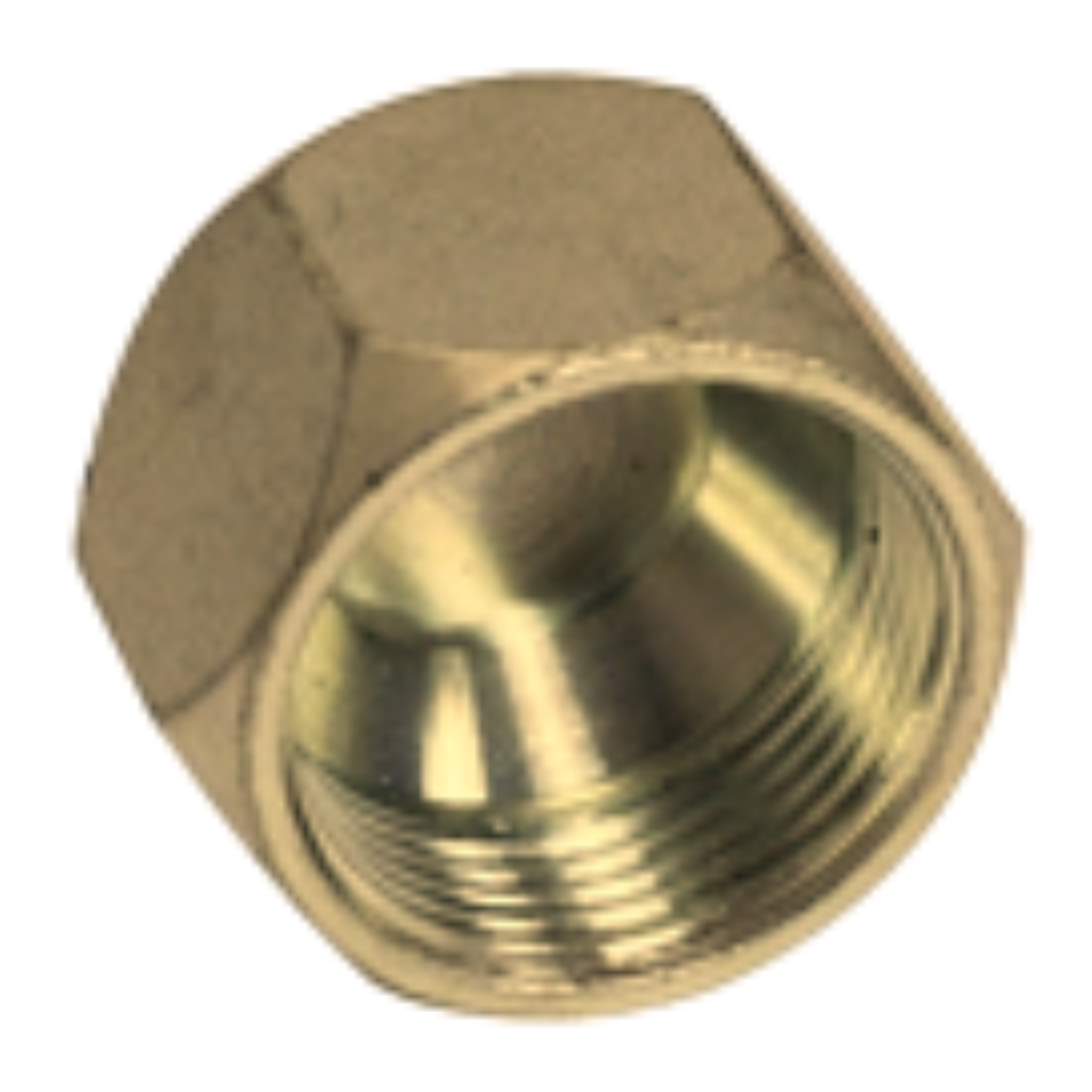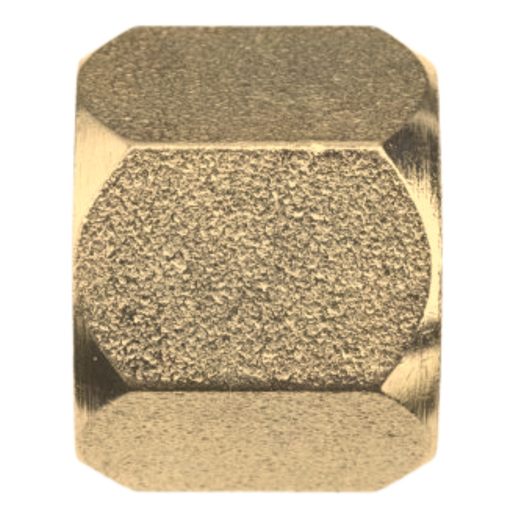 Our Series 0304-C-B JIC Cap Nuts are designed to securely seal and protect male-threaded JIC (Joint Industry Council) connections, which feature a 37-degree flare. Crafted from high-quality brass, these cap nuts offer excellent corrosion resistance, making them an ideal choice for environments where both durability and resistance to environmental factors are critical. The cap nuts are engineered to provide a tight, leak-free seal that prevents contamination and damage to exposed threads, ensuring the continued performance and integrity of hydraulic and pneumatic systems. With their easy-to-use hexagonal shape, these brass JIC cap nuts are an essential component for maintaining system reliability and protecting fittings in various industrial applications.