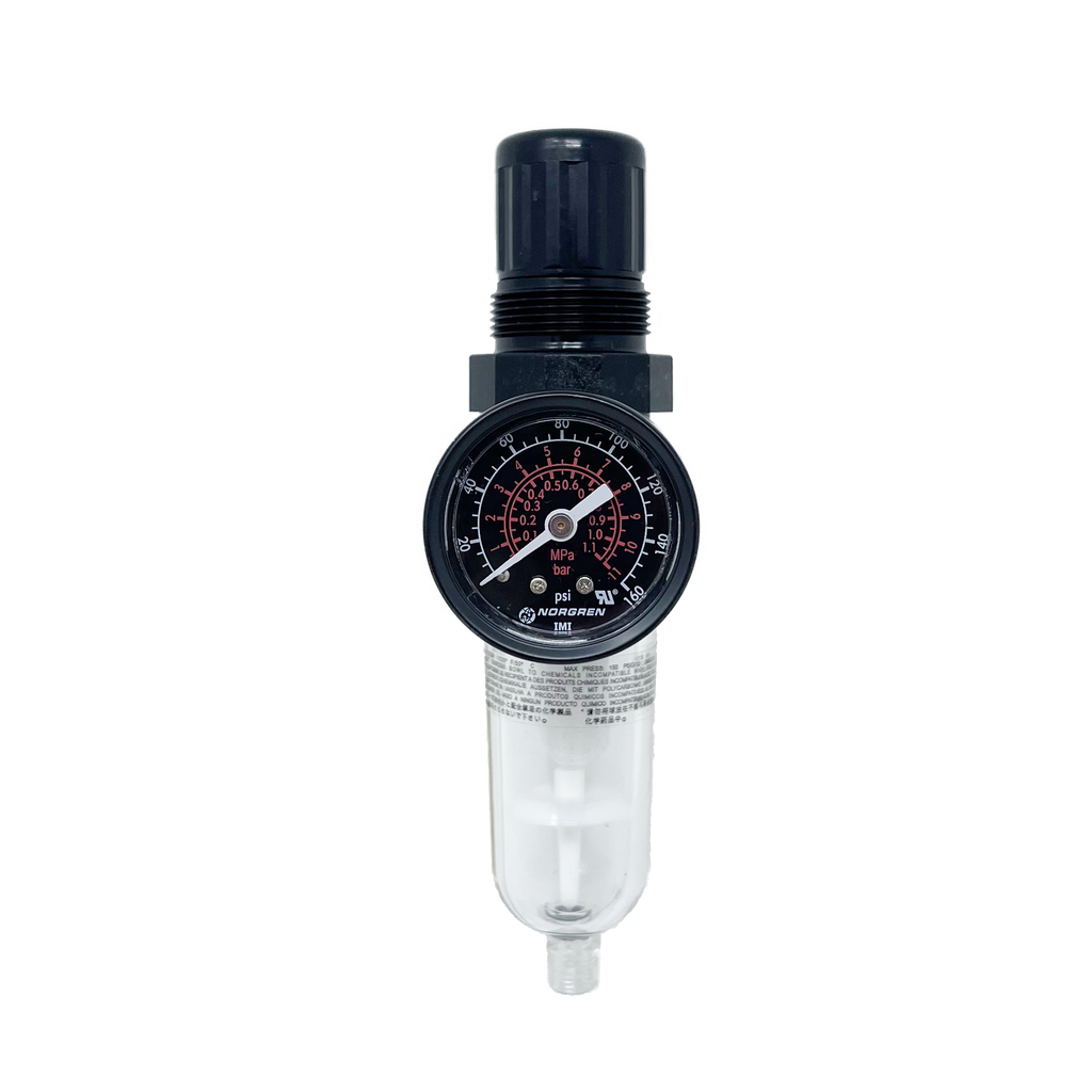 The Norgren filter regulator unit is our most popular single compressed air preparation unit. The filter regulator combines accurate pressure adjustment with bulk water (moisture) and particle removal (5 or 40 microns rating) in one unit. This benefits you by saving space and pneumatic connections for the same or improved performance.