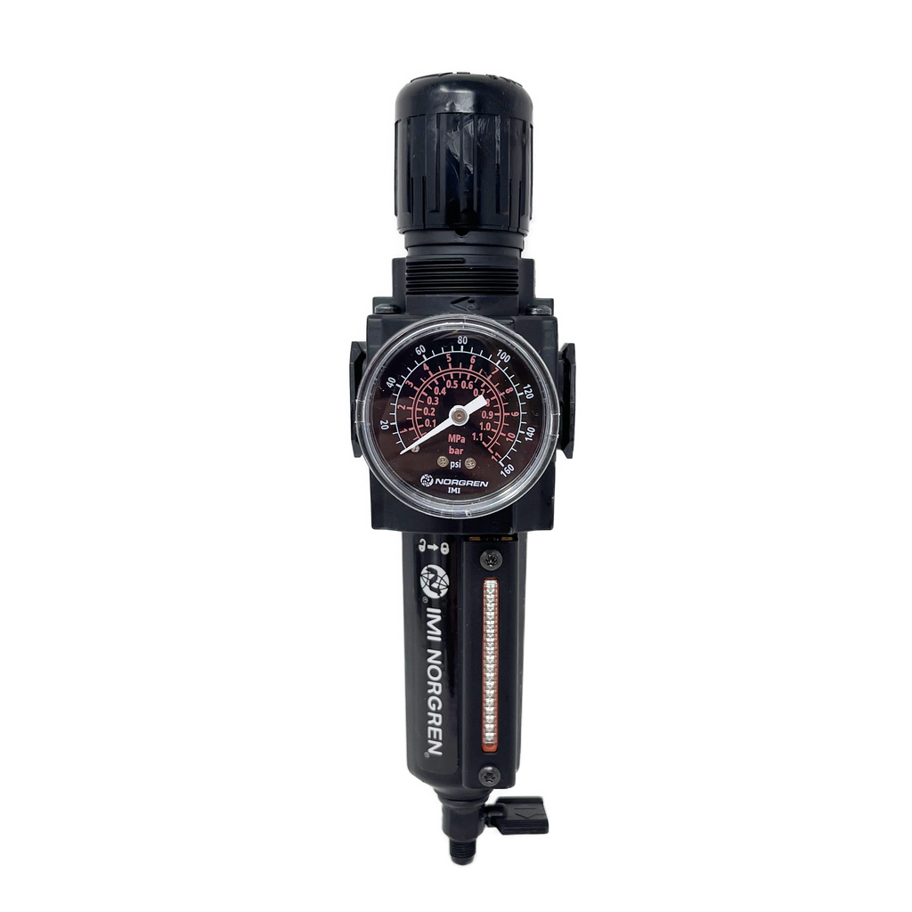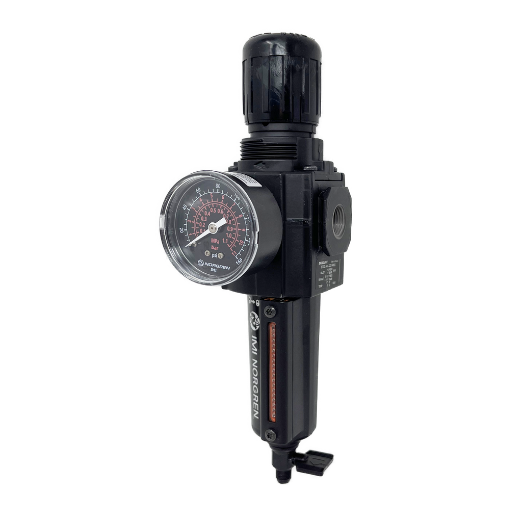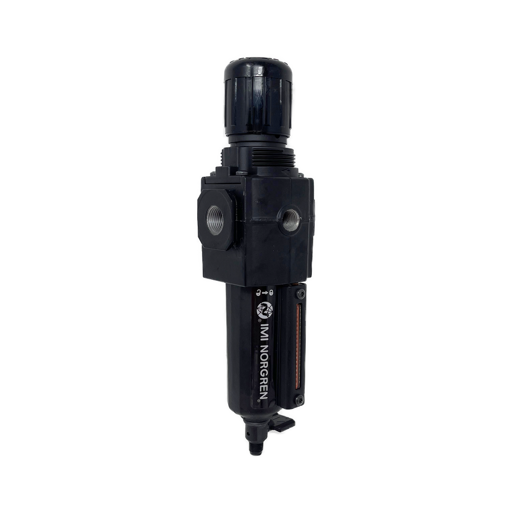 The Norgren filter regulator unit is our most popular single compressed air preparation unit. The filter regulator combines accurate pressure adjustment with bulk water (moisture) and particle removal (5 or 40 microns rating) in one unit. This benefits you by saving space and pneumatic connections for the same or improved performance.