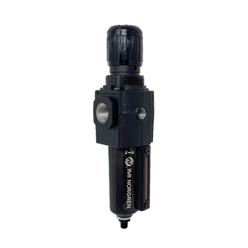 The Norgren filter regulator unit is our most popular single compressed air preparation unit. The filter regulator combines accurate pressure adjustment with bulk water (moisture) and particle removal (5 or 40 microns rating) in one unit. This benefits you by saving space and pneumatic connections for the same or improved performance.