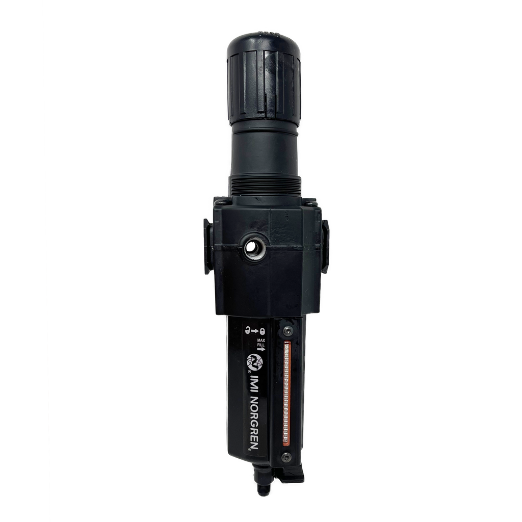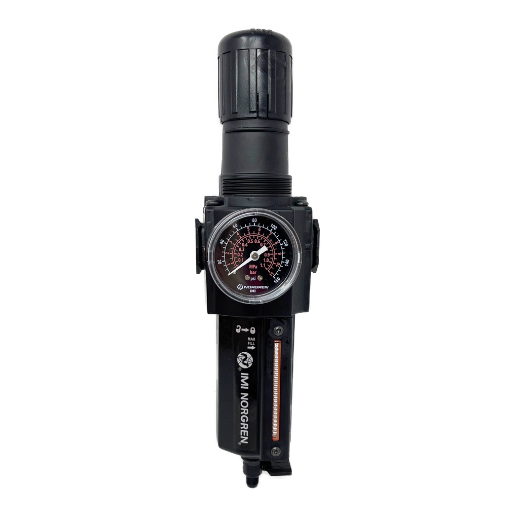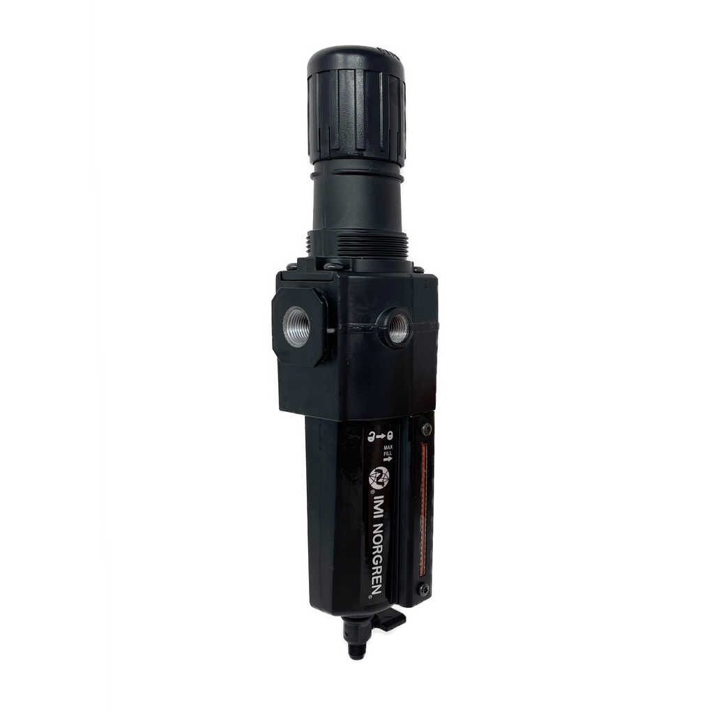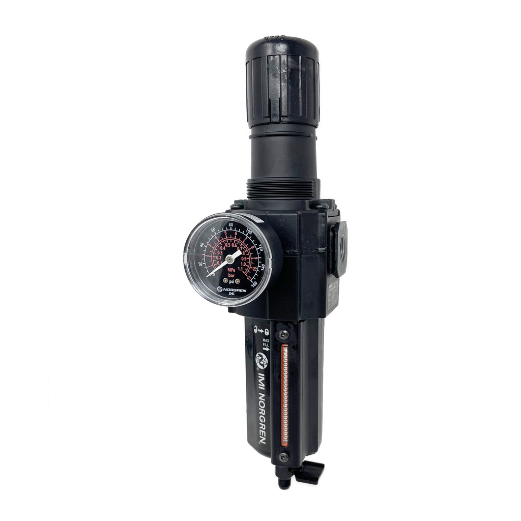The Norgren filter regulator unit is our most popular single compressed air preparation unit. The filter regulator combines accurate pressure adjustment with bulk water (moisture) and particle removal (5 or 40 microns rating) in one unit. This benefits you by saving space and pneumatic connections for the same or improved performance.