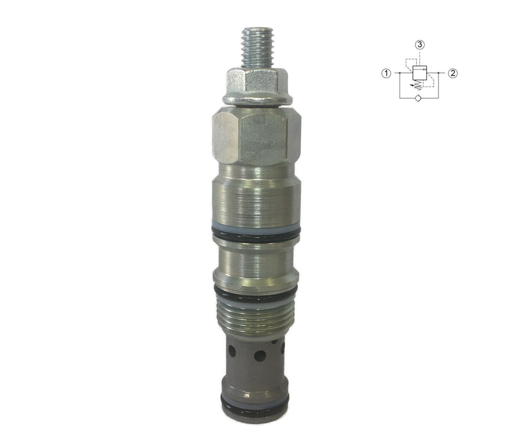Valvole Normale Ristretta Counterbalance Valve, 3:1 Pilot Ratio, Adjustable, 16 GPM, 5000psi Rated, Normal Type, 507 To 1522psi Adjustable Spring, 3045psi Pressure Setting. The Valvole America C00 Normale (Normal) cartridge is a standard Counterbalance Valve with a standard 3:1 pilot ratio and adjustable pressure settings. Port 1 is the load port, Port 2 is the exhaust port, and Port 3 is the pilot port. The spring chamber on the Normale counterbalance valve is drained/connected To Port 2. In this case, backpressure has effects on both the relief and pilot opening pressures, since it pushes the relief pisTon in the closed direction and opposes the pilot pisTon.