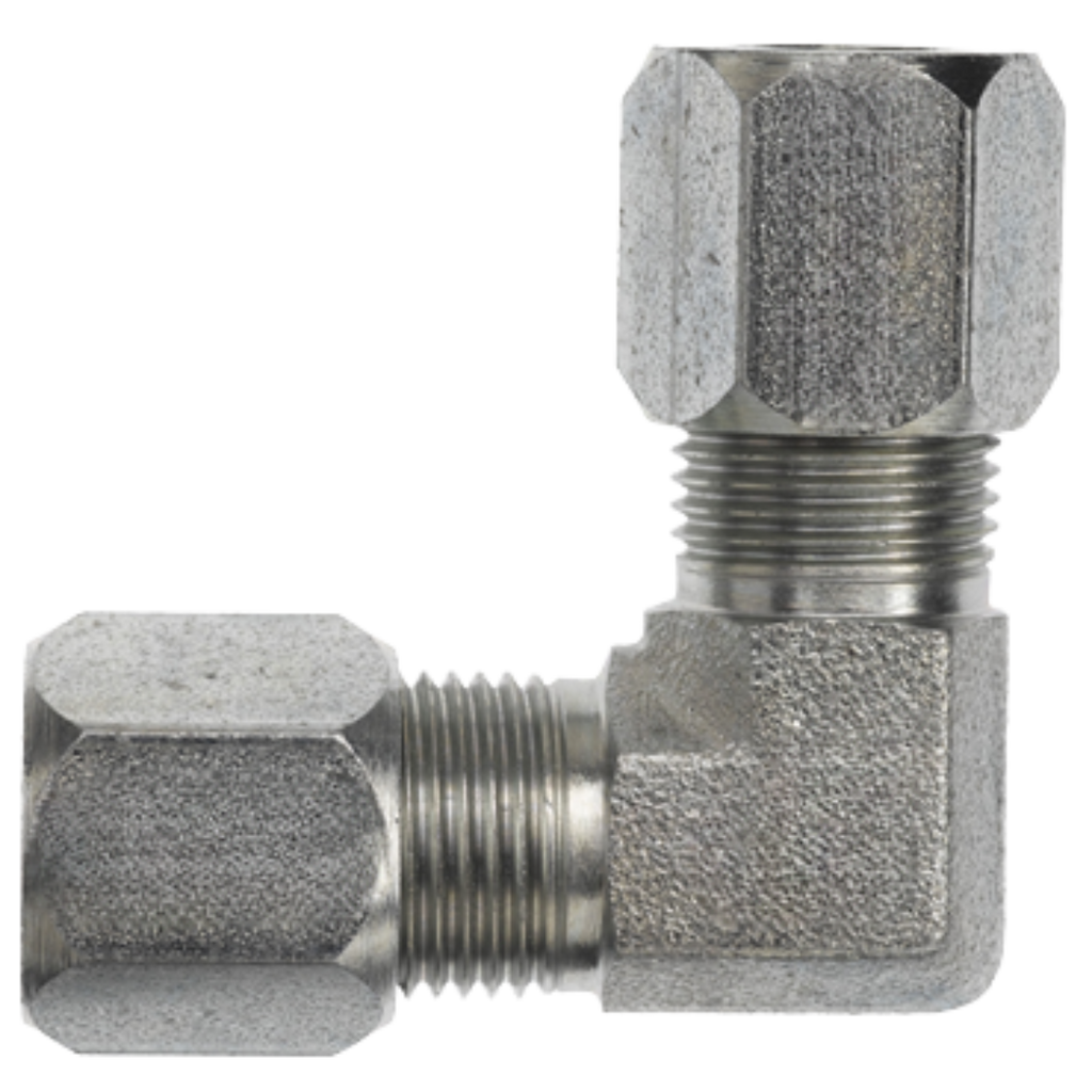 The Series C2500 90-Degree Angled Flareless Bite Type Tube Compression x Flareless Bite Type Tube Compression Union Adapters, made from durable carbon steel, are essential components for creating secure, leak-proof connections in hydraulic and fluid systems. These adapters feature a 90-degree angle, which allows for efficient routing of tubing in tight spaces. The flareless bite-type design eliminates the need for tube flaring, using ferrules that bite into the tube to form a strong seal. Both ends of the adapter use the same flareless bite-type mechanism, providing a reliable connection without requiring extra tools or complicated installations. These carbon steel adapters are perfect for high-pressure applications, making them a reliable choice for industries such as oil and gas, chemical processing, and manufacturing.