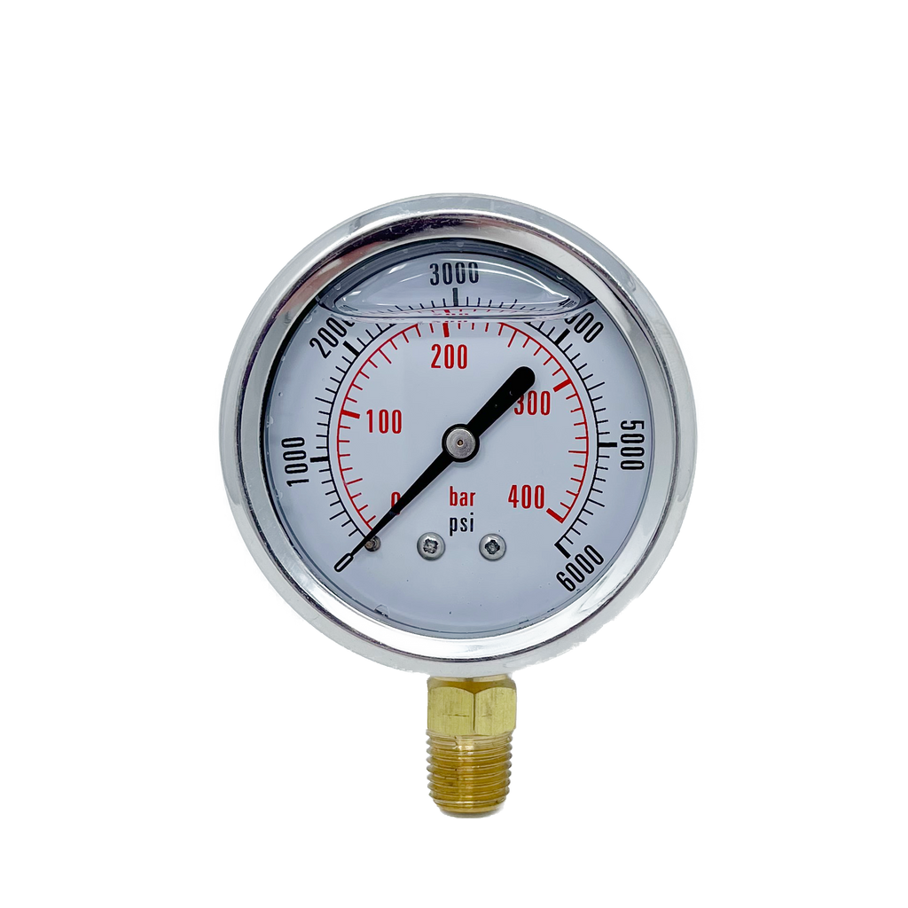 The Dynamic CF Series of Glycerine-Filled gauges offer an accurate, inexpensive option for your pressure gauge needs. CF gauges are constructed with a stainless steel case, bronze bourdon tube and connection, and a polycarbonate lens. All Dynamic gauges come with a built-in snubber. Standard gauge faces are designed with both psi and bar dual scales in a variety of pressure ranges up to 10,000psi. Certificates of Accuracy are available for an additional cost.