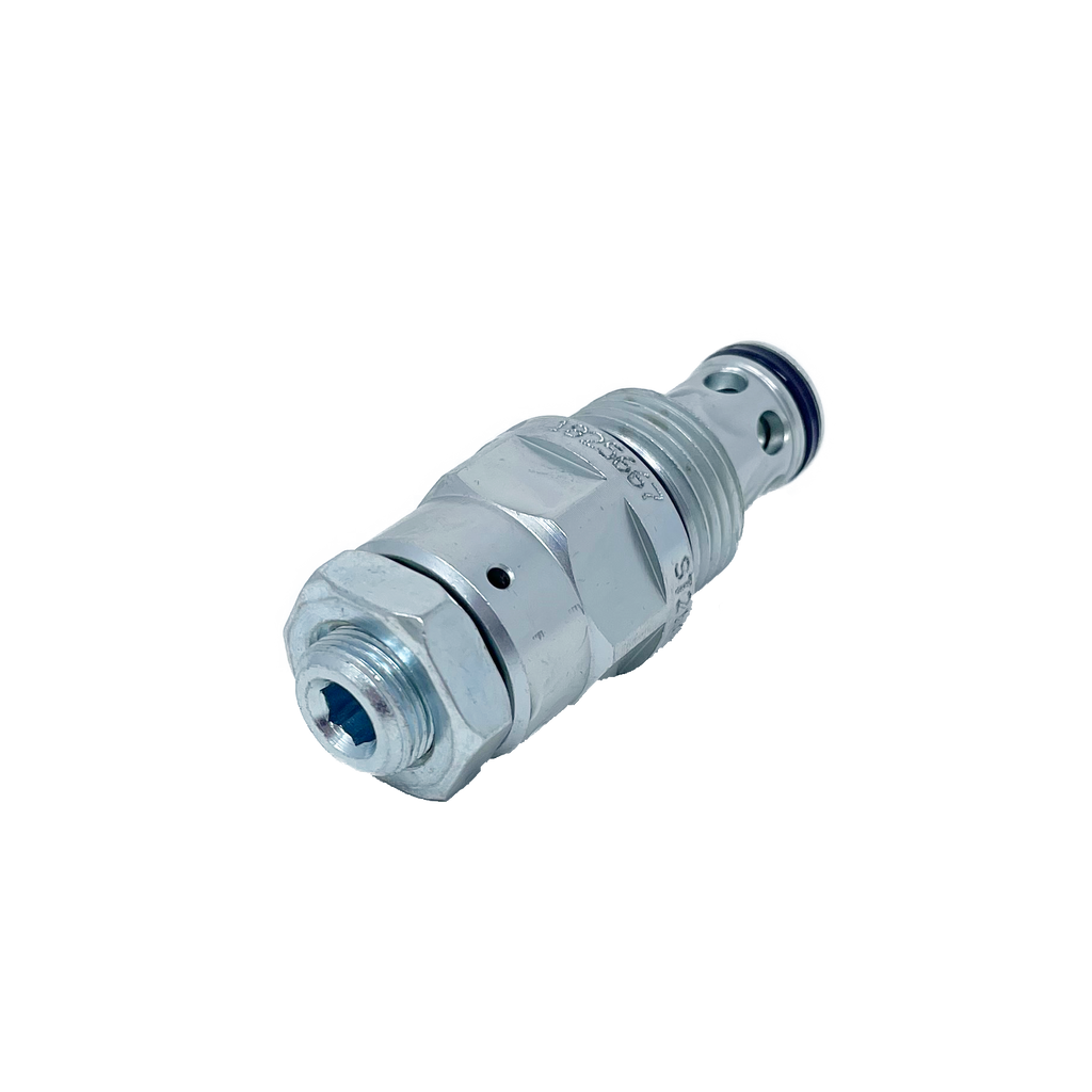 The Argo Hytos hydraulic flow restrictor valve is a screw-in cartridge that restricts flow in both directions, making it ideal for fine control of an uncompensated system or for use as a shut-off valve.