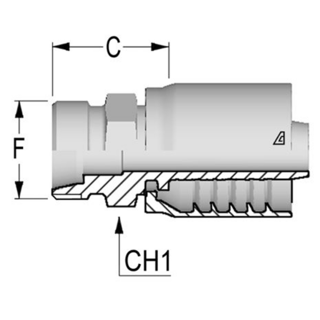 The Alfagomma One-Piece AlfaCrimp D-MMSL Fitting is a straight, carbon steel fitting designed to connect wire-braided hoses and 4-wire spiral hoses to a Metric Male 24° seat, following the DIN 3853 Light standard. This fitting uses a non-skive crimp design, which means you don’t need to remove or prepare any part of the hose before installation, making the process quicker and more efficient. A crimp fitting works by tightly compressing the hose onto the fitting, ensuring a strong, leak-proof connection. Braided hoses are flexible hydraulic hoses reinforced with multiple layers of steel wire, providing high strength and resistance to pressure. The Metric Male 24° seat ensures a reliable, durable seal, making this fitting ideal for fluid power systems and high-pressure applications that require secure, long-lasting connections.