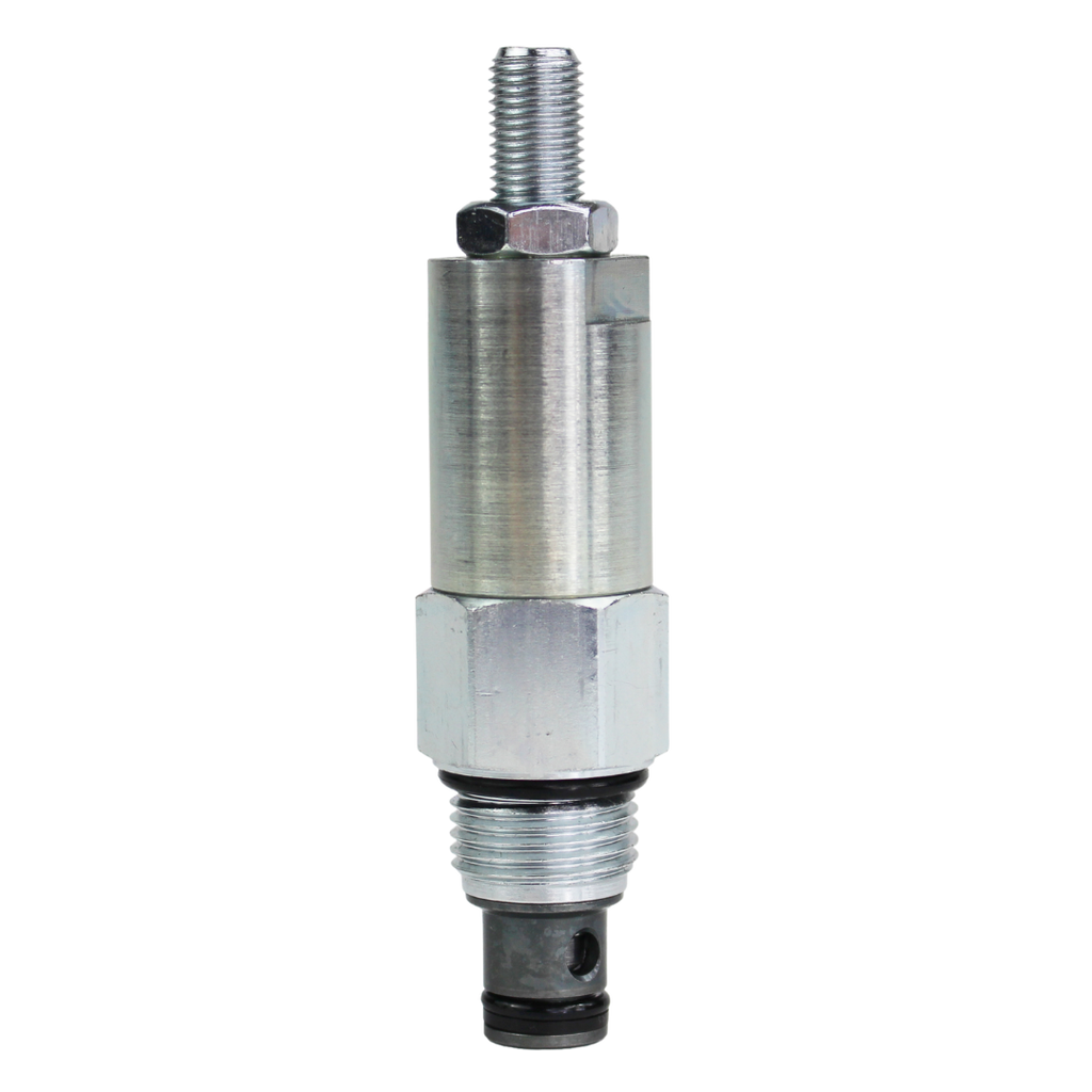 The Deltrol Fluid Products DDRV-080 Direct-Acting, Differential Area, Adjustable, Poppet Relief Valve is a high-efficiency valve designed to regulate pressure in hydraulic systems. It blocks flow from port 2 to port 1 until a preset pressure is reached, then opens to allow flow and prevent overpressurization. This valve offers rapid response to pressure changes, low pressure rise, and a hardened poppet for durability. It features adjustable settings with options for tamper resistance, and operates within a range of 50 to 3000 PSI with a flow capacity up to 10 GPM. Built from anodized aluminum, it ensures reliable performance across temperatures from -30°F to +250°F.