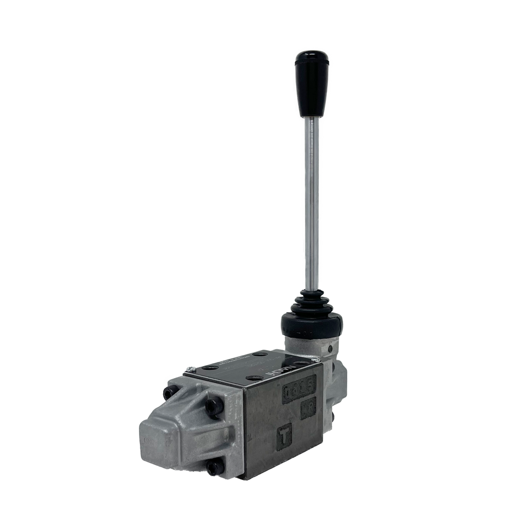 The Nachi DMA is a standard 3-Position, 4-Way, Lever Operated Directional Valve. Since a balanced type valve is used, there is no need for drain piping. Use with backpressures up to 2320psi is possible.