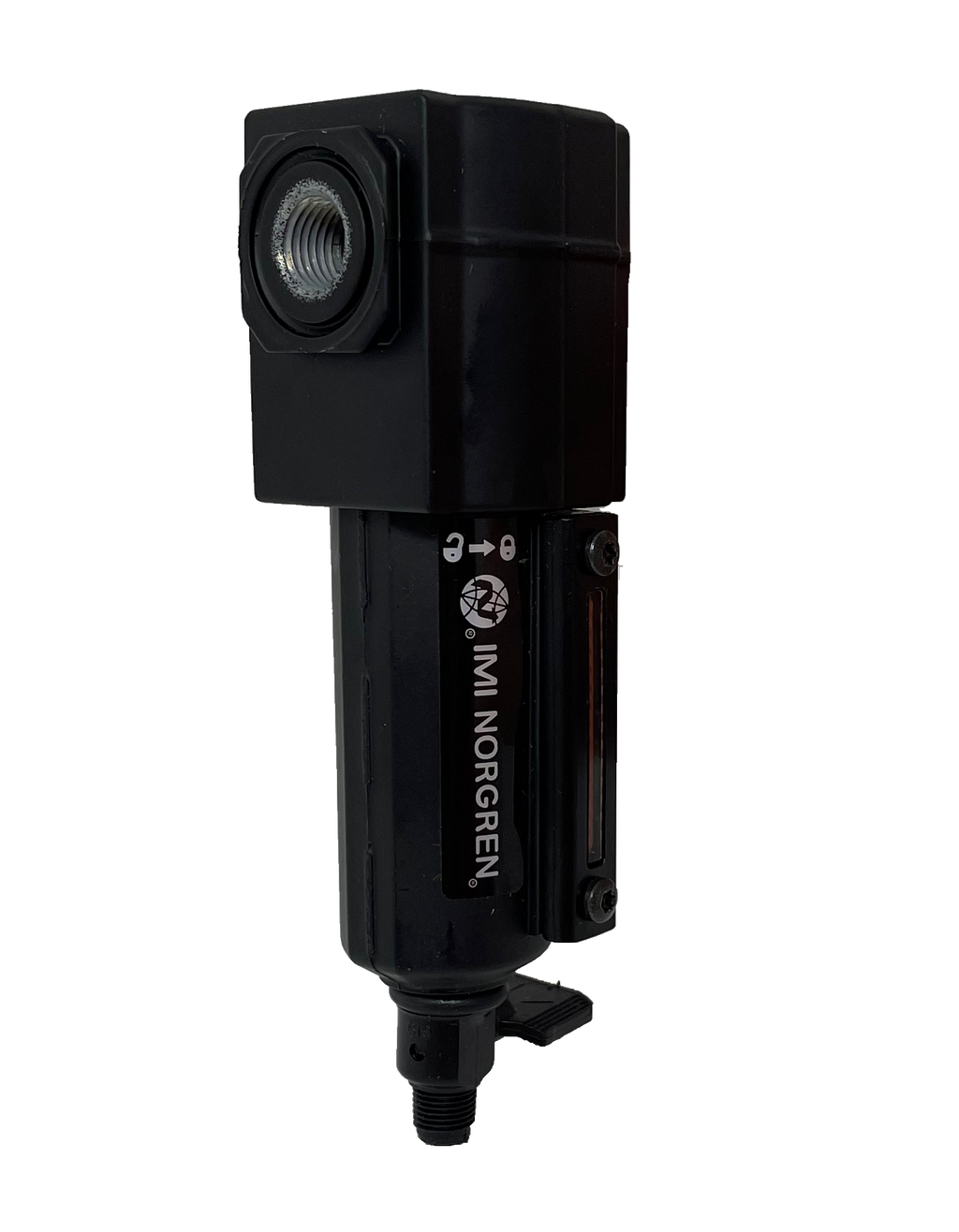 Norgren's F72G, F73G, and F74G General Purpose Filters are part of Norgren's Excelon Modular System. The Excelon design allows for inline or modular installation with other Excelon products, and the quick release bayonet bowl allows for quick filter replacement. These filters also have a highly visible prismatic liquid level indicator lens on their metal bowls.