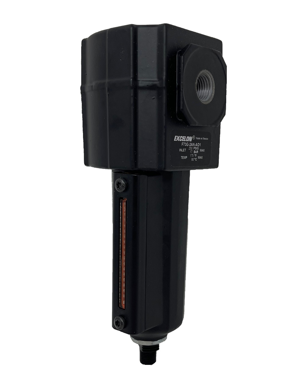 Norgren's F72G, F73G, and F74G General Purpose Filters are part of Norgren's Excelon Modular System. The Excelon design allows for inline or modular installation with other Excelon products, and the quick release bayonet bowl allows for quick filter replacement. These filters also have a highly visible prismatic liquid level indicator lens on their metal bowls.