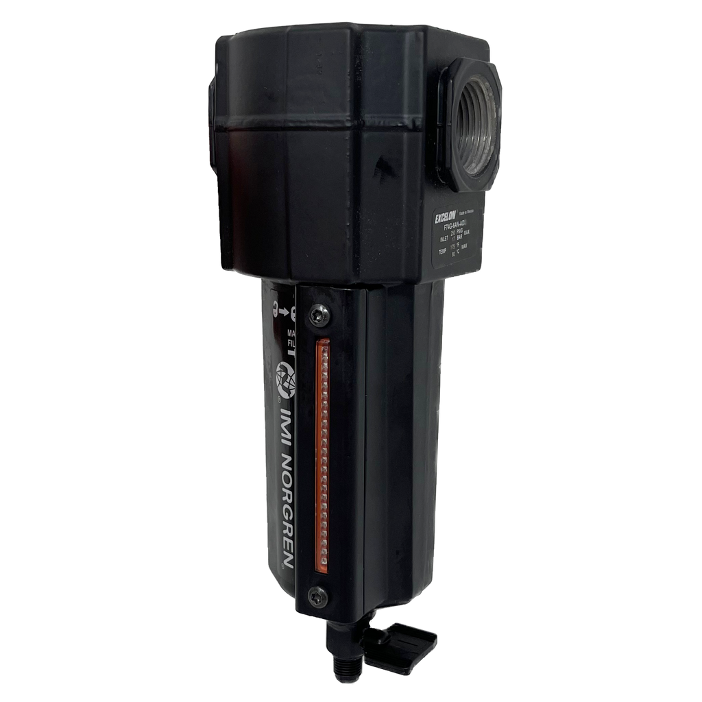 Norgren's F72G, F73G, and F74G General Purpose Filters are part of Norgren's Excelon Modular System. The Excelon design allows for inline or modular installation with other Excelon products, and the quick release bayonet bowl allows for quick filter replacement. These filters also have a highly visible prismatic liquid level indicator lens on their metal bowls.