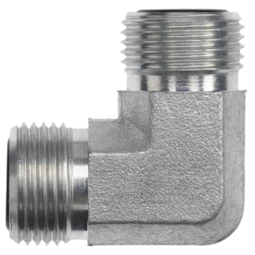 The Series FS2500 90-Degree Male ORFS x Male ORFS adapters are high-quality carbon steel fittings designed for secure, leak-free connections in hydraulic systems. These adapters feature a 90-degree angle, making them ideal for routing hoses and pipes efficiently in tight or restricted spaces. Both ends are equipped with male ORFS (O-Ring Face Seal) connections, which ensure a reliable, leak-tight seal by compressing an O-ring against a flat face. This connection type is known for its superior leak control, making it ideal for high-pressure fluid power systems. The Series FS2500 provides excellent strength, corrosion resistance, and long-lasting performance, making it the perfect choice for industrial applications that require dependable, durable, and secure connections in fluid transfer systems.